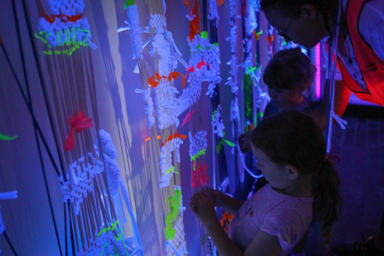 There was a hammock area with books – a bit more relaxing – and a blacklight weaving room, seen below.