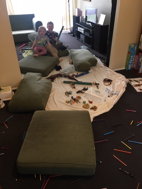 Mel’s kids turn their lounge room into a “Rug Island“.