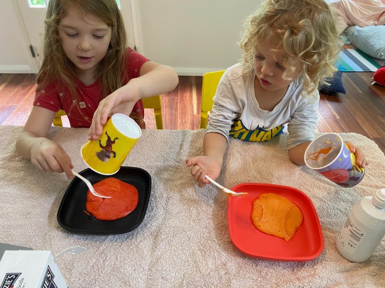 We made lava slime while studying mountains and volcanoes for “Mountmumandad”