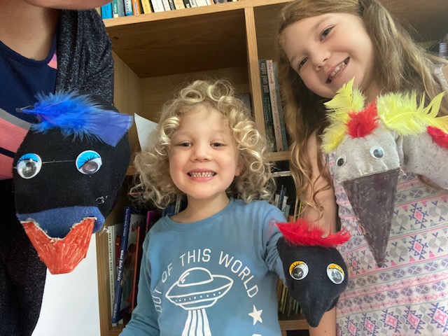 My kiddos and I made emu sock puppets for “Shaun“.