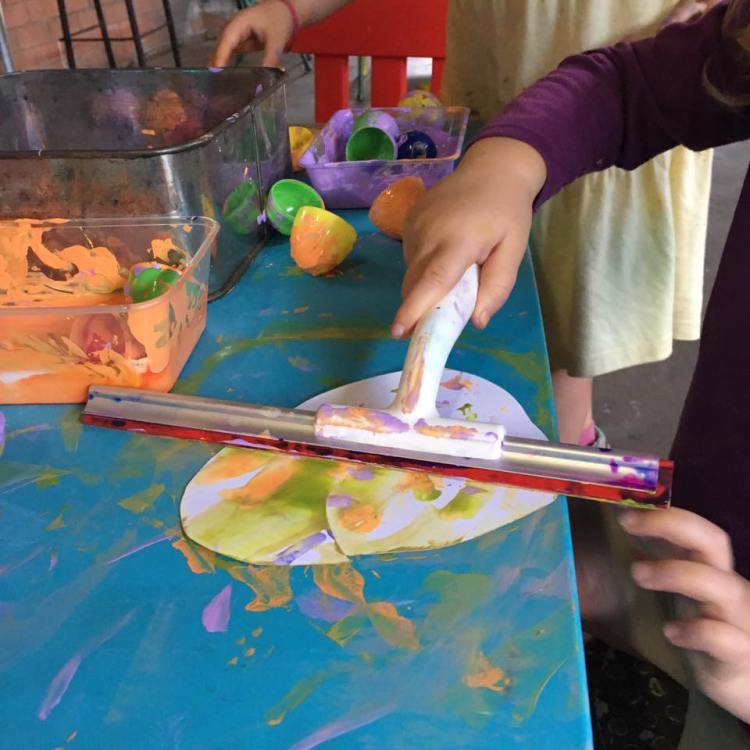 We used a similar technique at a playgroup a few years ago, but with a squeegee instead.