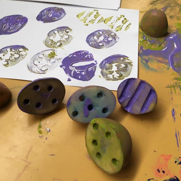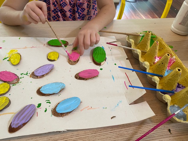Another messy painting technique – cut a potato in half and carve out some polka dots or stripes and you’ve got an Easter egg stamp.