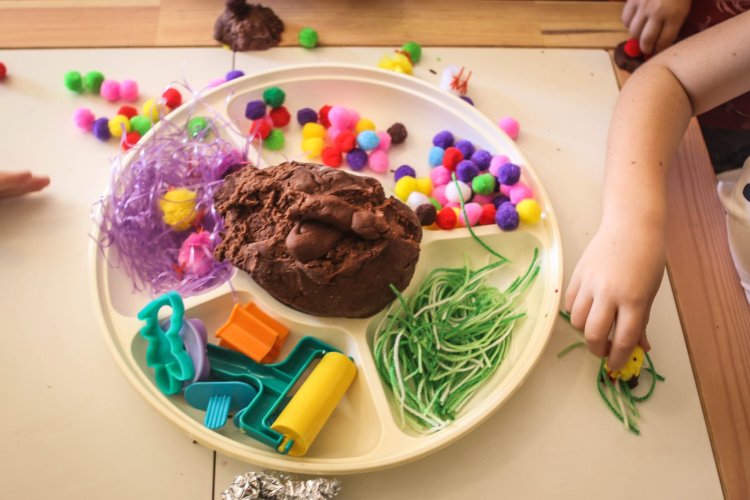 Another playgroup favourite is chocolate play dough. Mix in some cookie cutters and colourful accessories and the kids play with this forever. Basically I just use the regular playdough recipe that’s on the box of cream of tartar and sub in 1/4 Cup of cocoa power for 1/4 Cup of flour. It smells divine, but as your kids will find out when they inevitably try to eat it, the taste is not so sweet π