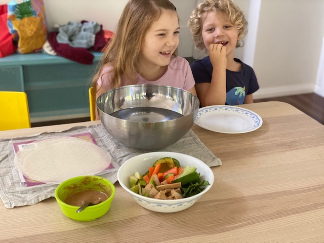 My kids got busy in the kitchen making rice paper rolls for Takeaway.