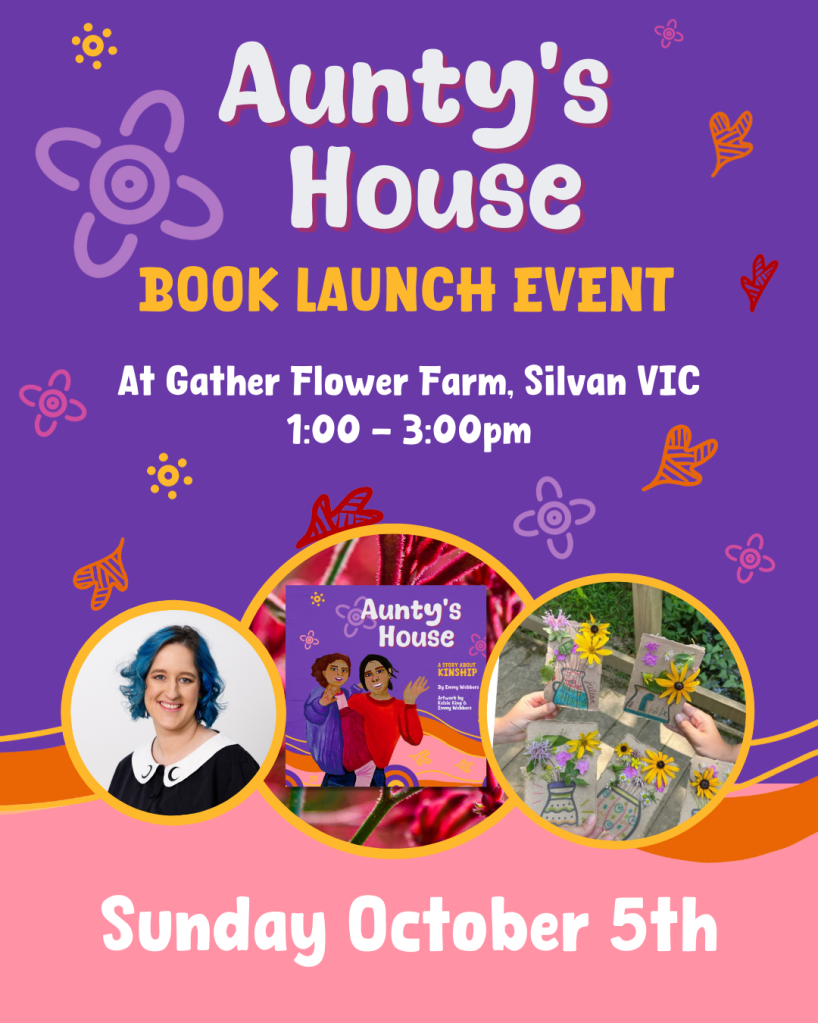 We’re heading to Victoria to launch “Aunty’s House” a new picture book by Emmy Webbers and Kelsie King at Gather Flower Farm, where we’ll have craft activities, entertainment and more!