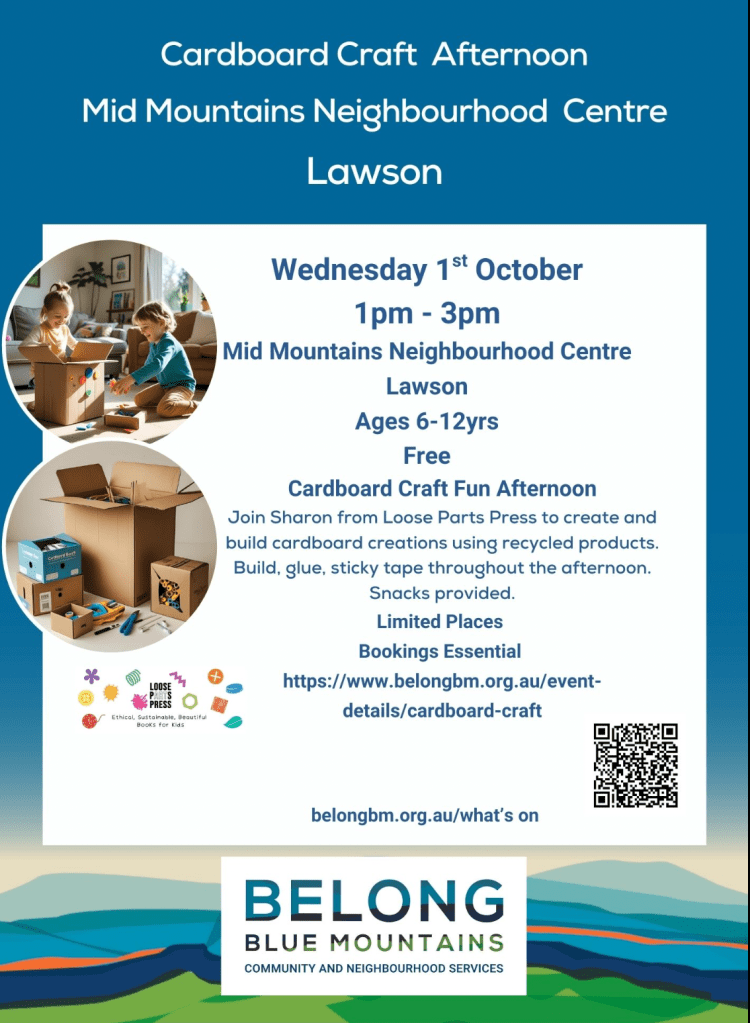Join us for an afternoon of creative cardboard play during the school holidays at the Mid Mountains Neighbourhood Centre.