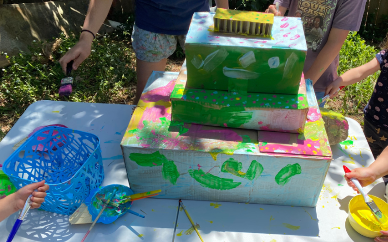 You might be more familiar with the concept of loose parts in early childhood, however, unstructured time and space to create is a rarity for primary school students, and still just as beneficial! We invite kids from Kindy up to Year 6 to join us each week where we’ll have a variety of materials available to create art, make up stories, or just simply play – without the pressure of expected results.