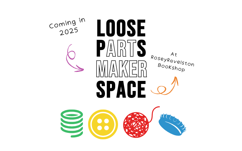 Loose Parts isn’t just the name of our press, it’s a play theory that promotes creativity through the use of open-ended materials. That’s what we envision for our new after-school activity starting in February 2025 on Tuesdays at RoseyRavelston Bookshop. Read more below!