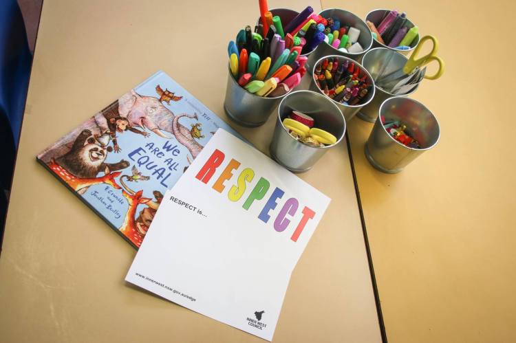 The first workshop I ran was at Australia Street Infants School’s OOSH program. We started by reading a book called “We Are All Equal”, though on second reading I changed the words to “We all deserve respect” and had a great chat with the kids about respecting all people, regardless of age, what they look like, what country they were born in, or what their families are like.