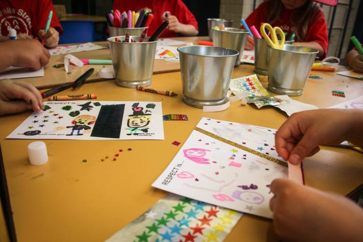 Then we moved to tables where I’d provided an array of materials for them to create. Some chose to use words, some drew pictures of people they respect, some just evoked feelings, but they were all unique.
